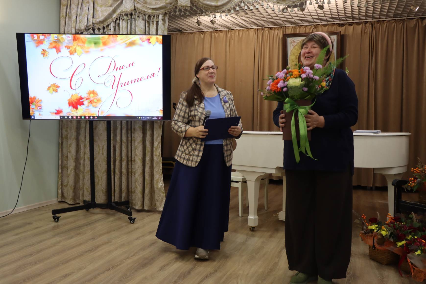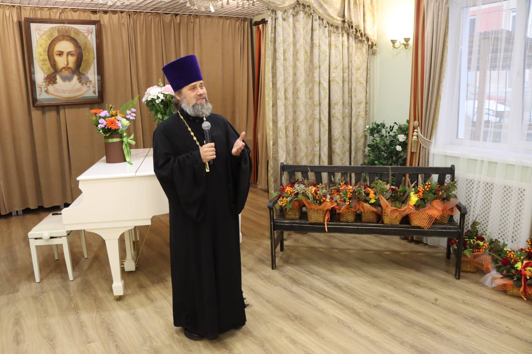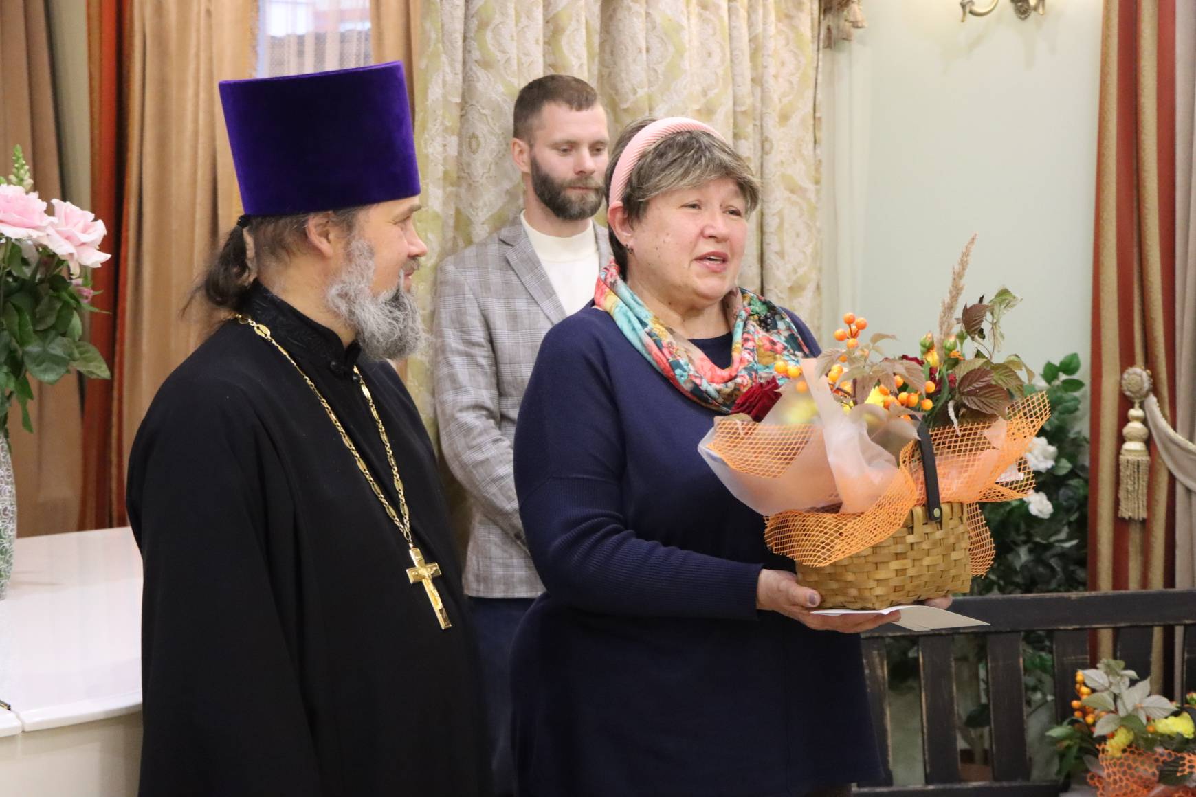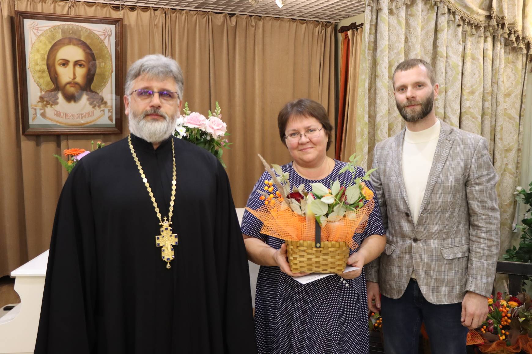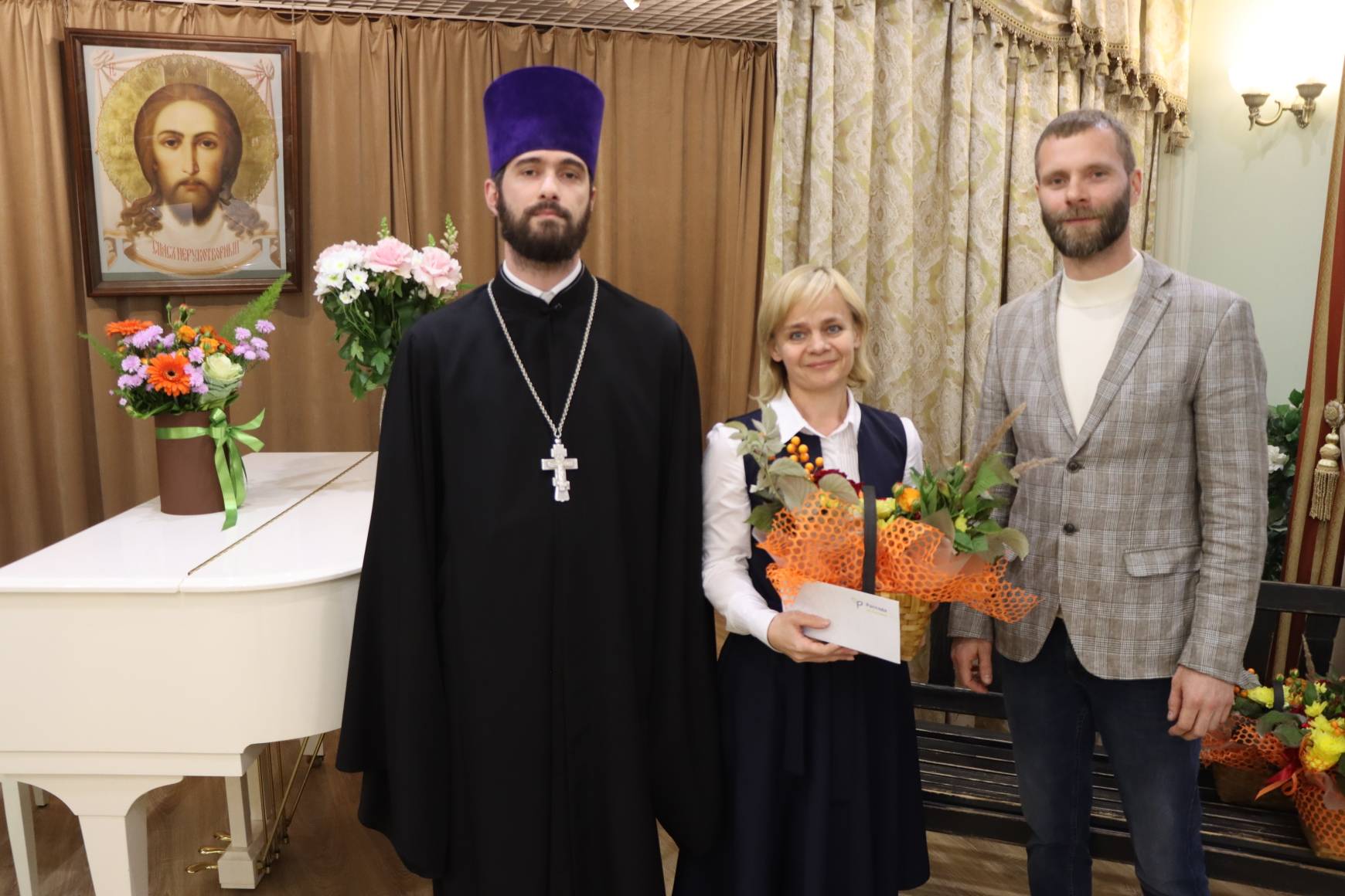 Батюшки со словами благодарности и добрыми пожеланиями вручили педагогам подарки и корзины цветов.