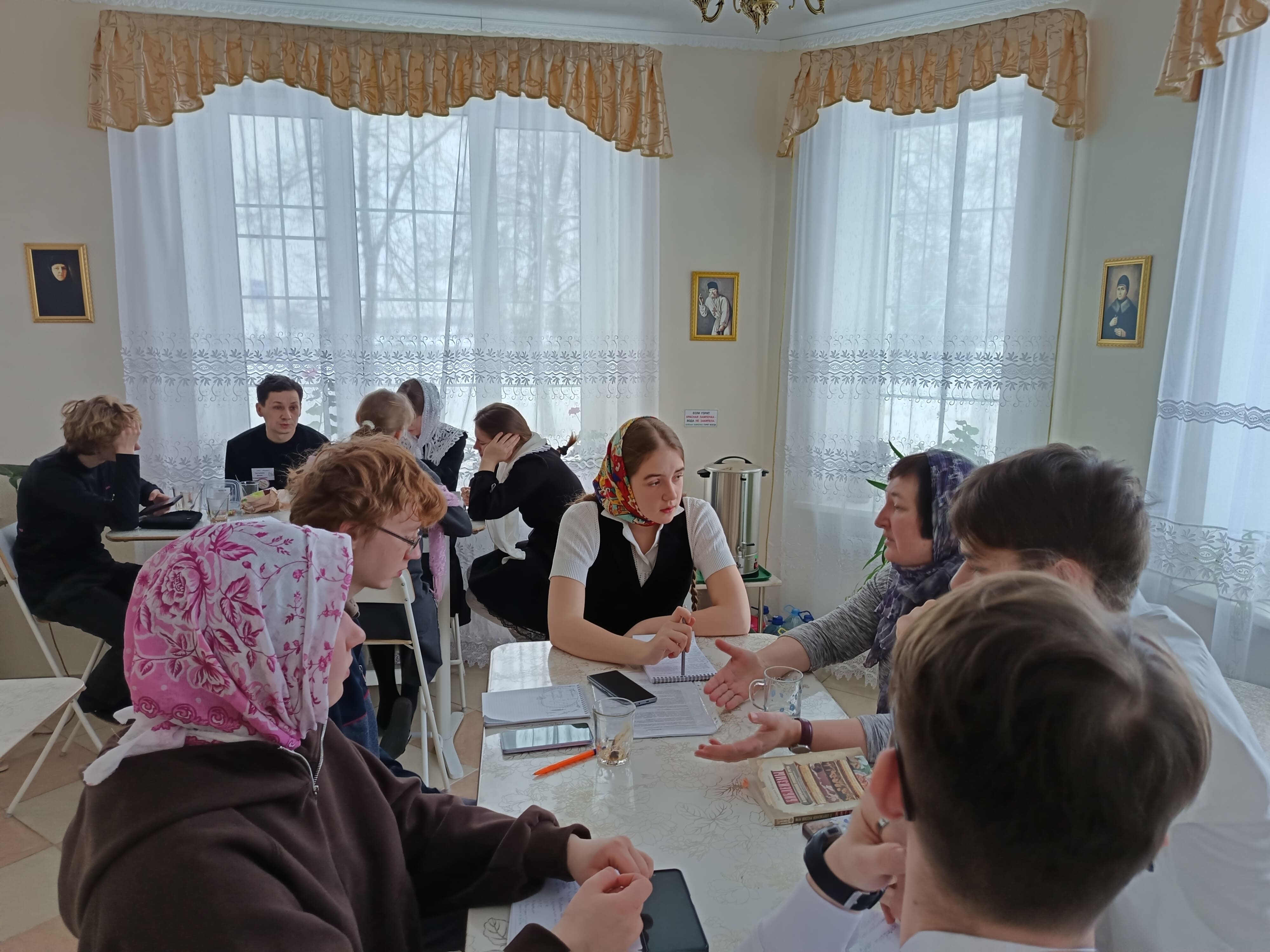 Традиционная финальная дискуссия игры состоялась в зале монастырской Александринской православной школы, с директором которой – инокиней Натальей – пермяки познакомились ещё накануне, когда посетили музей школы с прекрасной экспозицией, посвященной Великой Отечественной войне, и диорамой Сталинградской битвы; здесь матушка Наталья провела урок о мужестве экипажа трагически погибшей подводной лодки «Курск». В ходе дискуссии участникам необходимо было поразмышлять как на темы, касающиеся правления Николая I, так и на вечные вопросы, к примеру: «Как понимать фразу “Стяжи дух мирен, и вокруг тебя спасутся тысячи”?», «Кто в действительности меняет историю к лучшему и в чем истинное величие человека?», «Долг, призвание, крестоношение – что из этих понятий необходимо вернуть в современную жизнь?».