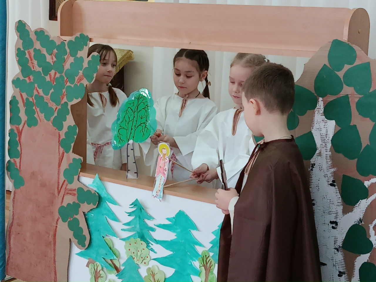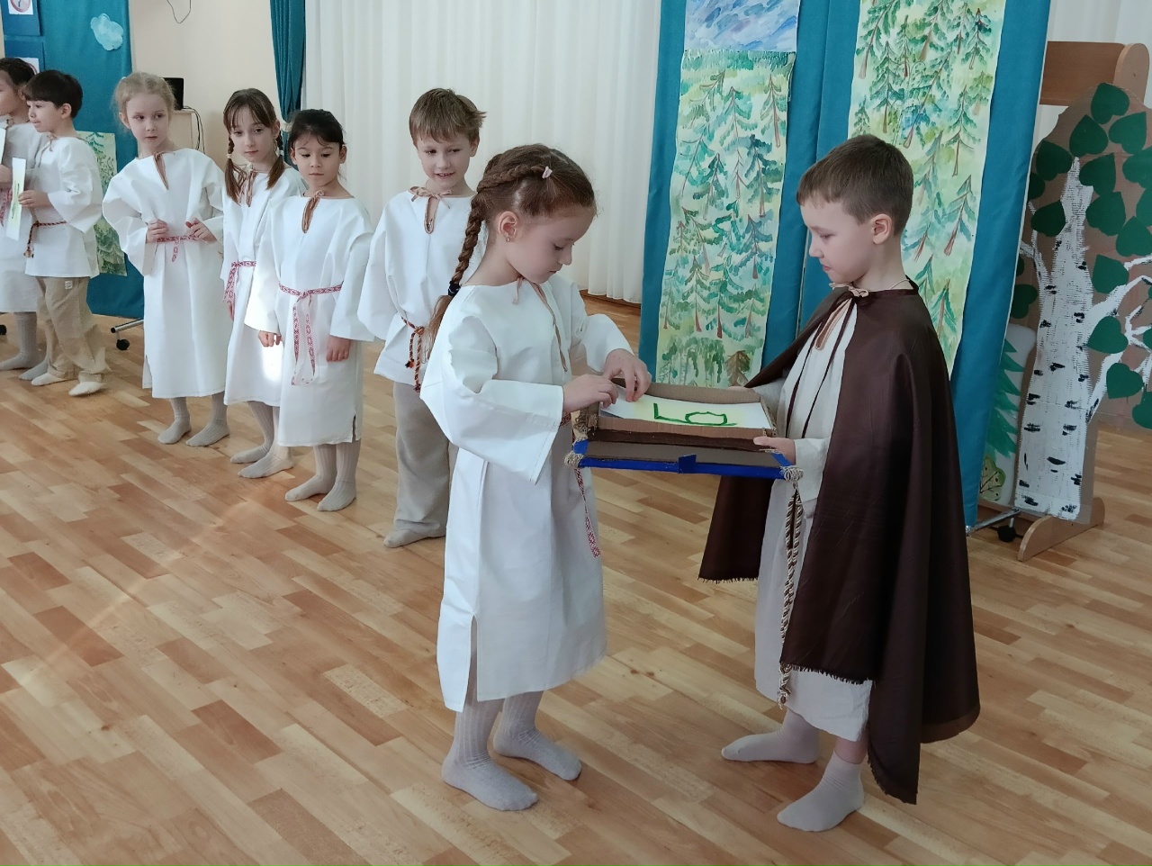 А открылась мастерская мини-спектаклем о святителе Стефане Пермском, представленным подготовительной группой православного детского сада.