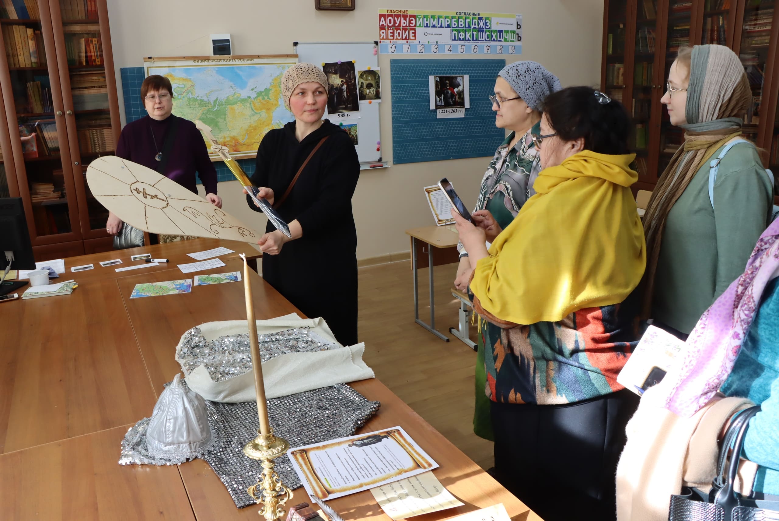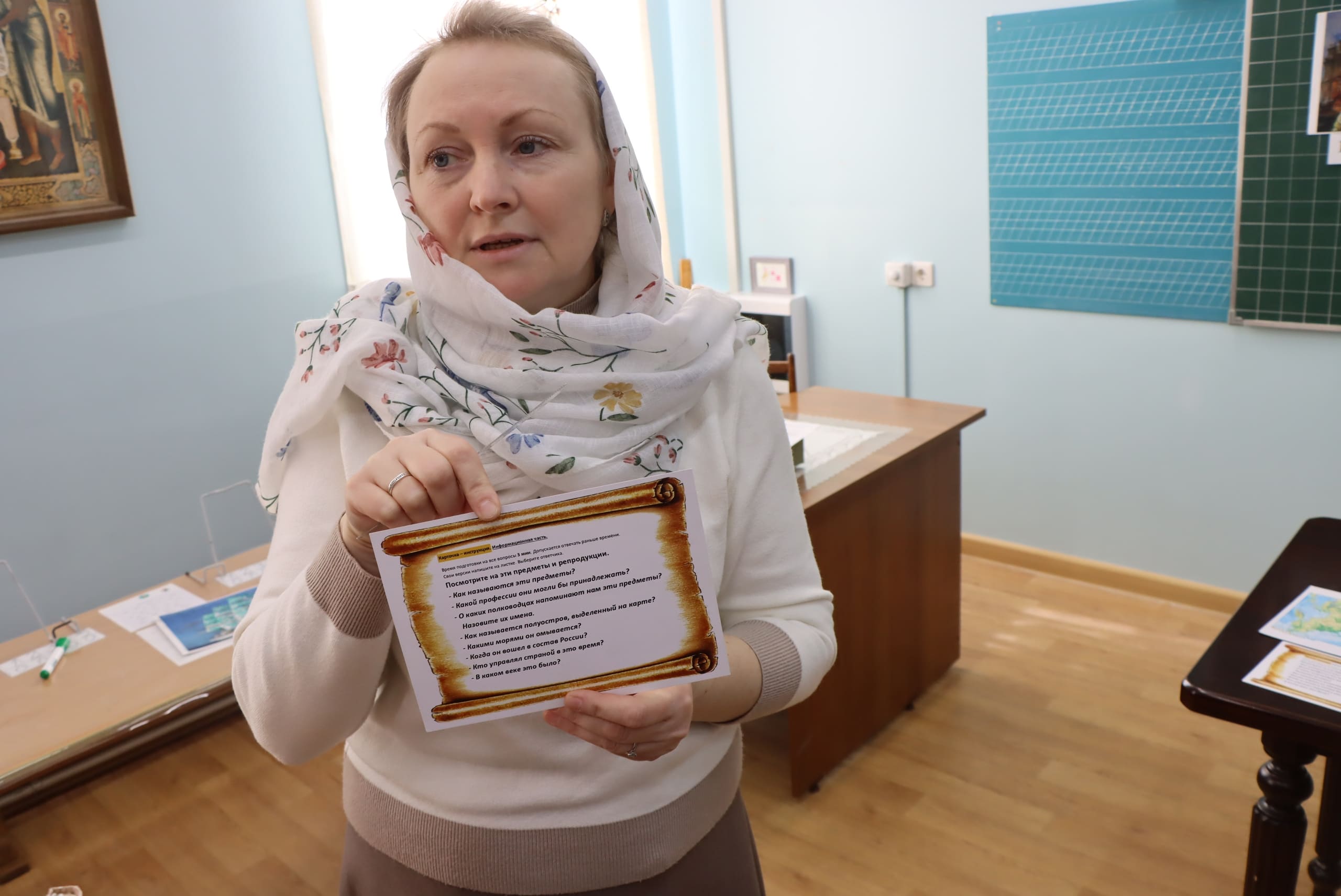 Авторы игры - Надежда Алексеевна Зубакина и её коллеги по Семейной школе "Покров" - погрузили участников мастерской в разные эпохи и события российской истории: от князя Владимира, Куликовской битвы и побед Суворова и Ушакова до Великой Отечественной войны и Уральского добровольческого танкового корпуса. На каждом этапе учителя выполняли задания разного уровня, в том числе и касающиеся нравственных аспектов исторических событий. Завершилась игра написанием писем бойцам СВО и ответом на главный вопрос: "Что позволило многонациональному народу России в разные века объединяться и одерживать победы?"